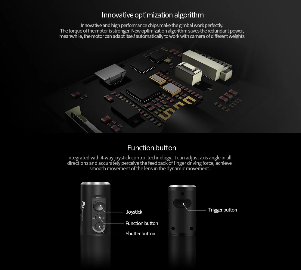 - Triggle button to quickly enter lock mode and reset the gimbal.